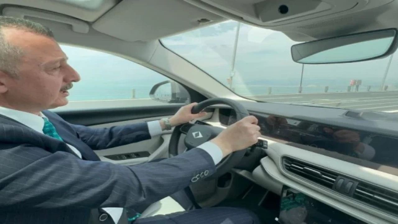 KOCAELİ (İGFA) - Türkiye'nin ilk yerli otomobili TOGG ile Kocaeli genelindeki programlarına giden Marmara Belediyeler Birliği ve Kocaeli Büyükşehir Belediye Başkanı Tahir Büyükakın, Osmangazi Köprüsü’nden TOGG ile geçti.
