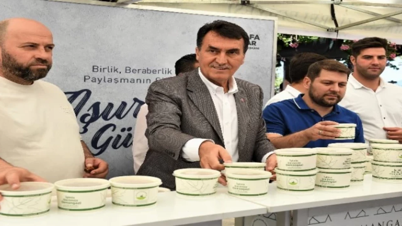 Bursa'da Osmangazi Belediye Başkanı Mustafa Dündar, Muharrem ayı dolayısıyla vatandaşlara aşure ikram etti.