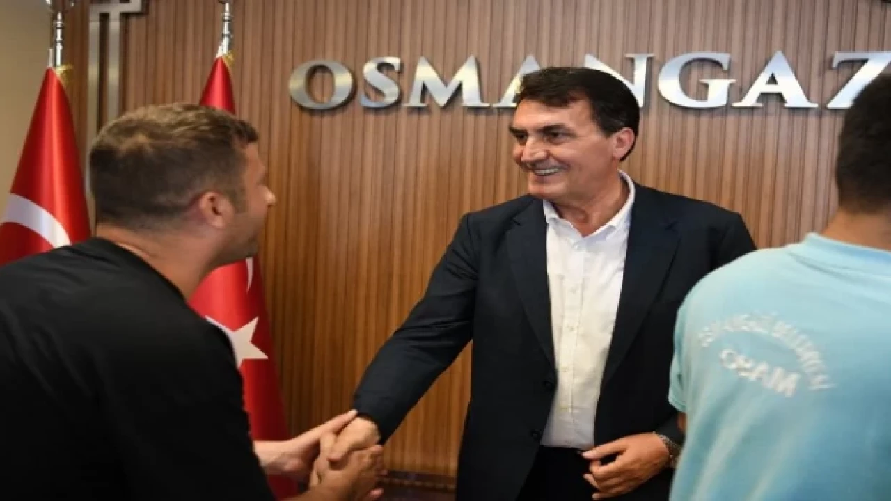Bursa'da Osmangazi Belediye Başkanı Mustafa Dündar, Kurban Bayramı öncesi son iş gününde belediye personeli ile tek tek bayramlaştı.