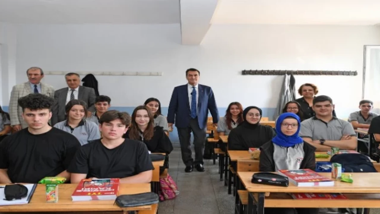 Osmangazi Belediye Başkanı Mustafa Dündar, sınıfları gezerek yardımcı kitap seti hediye ettiği öğrenciler ile sohbet ederek taleplerini dinledi.