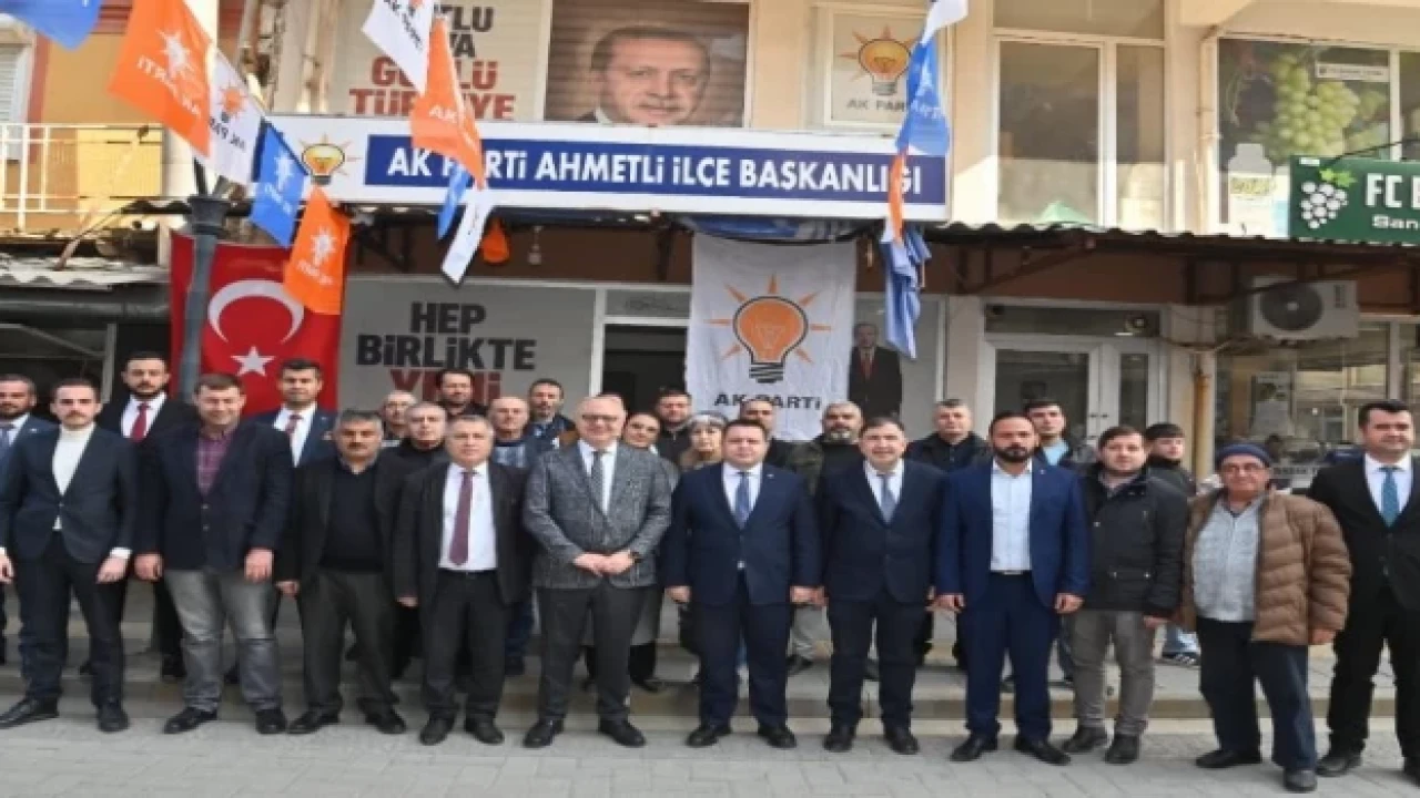 İlçe ziyaretlerine Ahmetli ile devam eden Manisa Büyükşehir Belediye Başkanı ve Cumhur İttifakı Büyükşehir Belediye Başkan Adayı Cengiz Ergün, Ahmetli Belediye Başkanı ve Cumhur İttifakı Ahmetli Belediye Başkan Adayı Ahmet Alhan ile birlikte AK Parti İlçe Başkanlığını ziyaret etti.