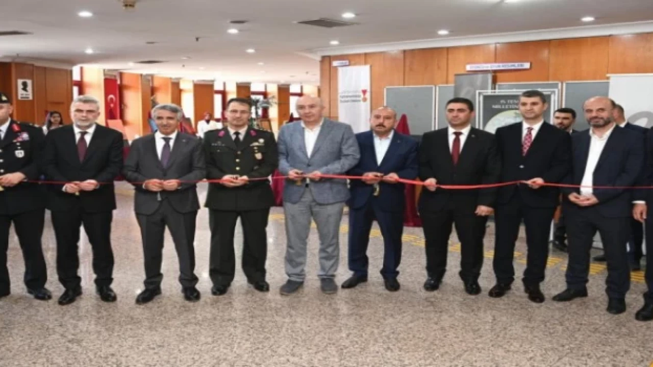 KAHRAMANMARAŞ (İGFA) - 15 Temmuz Demokrasi ve Milli Birlik Günü dolayısıyla Kahramanmaraş Büyükşehir Belediyesi, Valilik ve paydaş kurumlar iş birliğiyle bir dizi anma etkinliği gerçekleştiriliyor. Anma etkinlikleri kapsamında Necip Fazıl Kısakürek Kültür Merkezi’nde “15 Temmuz Milletin Zaferi” temalı serginin açılışı gerçekleştirildi. Sergi açılışında Büyükşehir Belediye Başkanı Fırat Görgel’in yanı sıra Vali Mükerrem Ünlüer, KSÜ Rektörü Prof. Dr. Alptekin Yasım, Onikişubat Belediye Başkanı Hanifi Toptaş, Onikişubat Kaymakamı Salih Çiğdem, AK Parti İl Başkanı Cüneyt Doğan, İl Jandarma Komutanı Tuğgeneral Gökhan İnan, İl Emniyet Müdürü Nurettin Gökduman, İl Müftüsü Abdurrahman Kotan ve sanatseverler de yer aldı. Başkan Fırat Görgel ve beraberindeki heyet, kurdele kesilerek açılışı gerçekleştirilen sergiyi ziyaret ederek eserlere ilişkin bilgiler aldı.