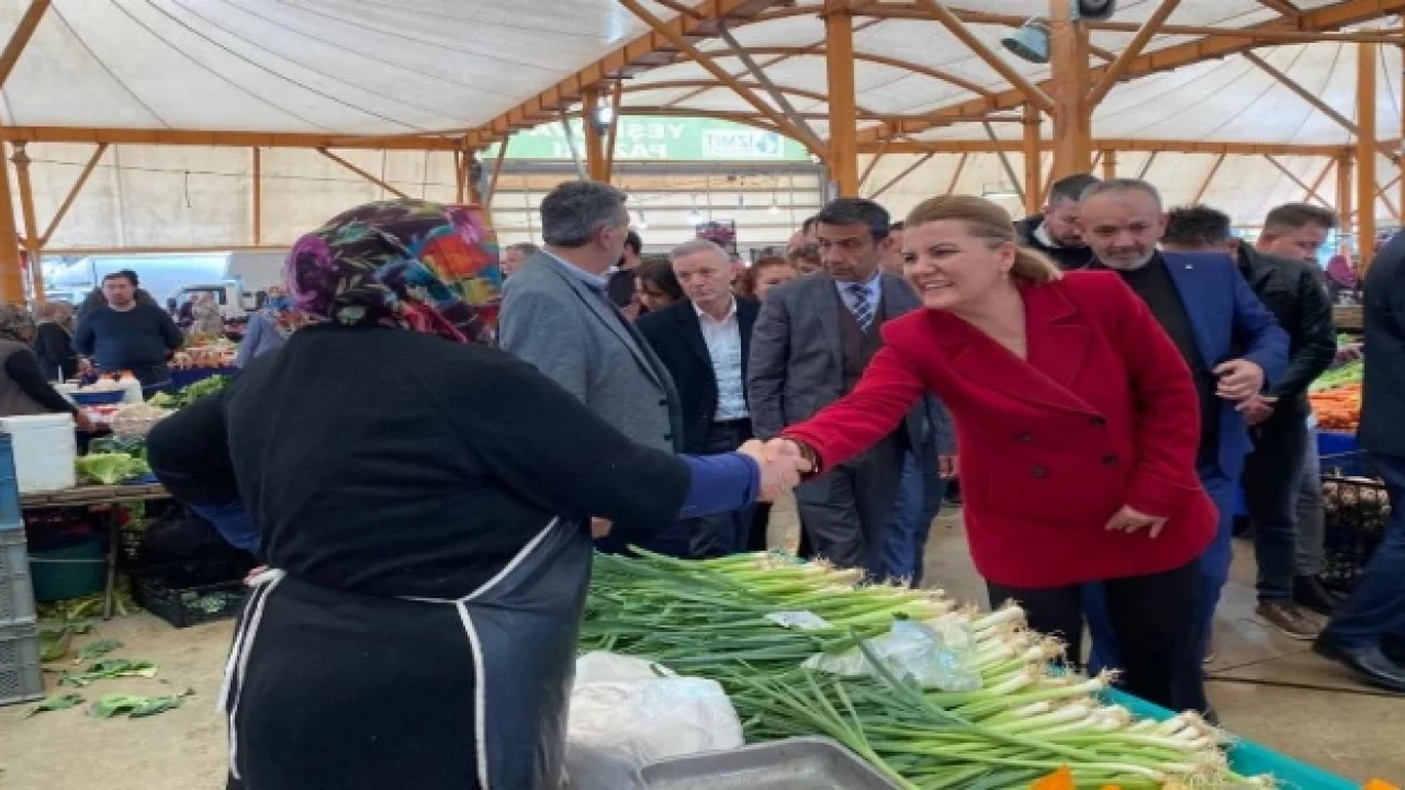 Yeşilova Pazarı’nı ziyaret ederek esnaf ve vatandaşlarla bir araya gelen İzmit Belediye Başkanı Fatma Kaplan Hürriyet, pazarcı esnafına kolay gelsin dileklerini iletti
