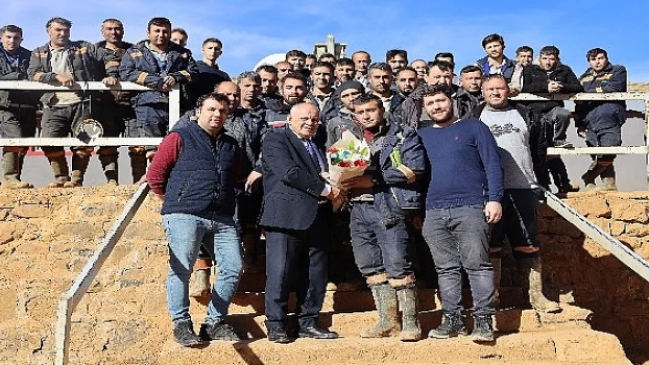 Ocaklarda çalışan işçilerin günlerini kutlayan Başkan Esat Öztürk, onlarla sohbet ederek birlikte yemek yedi.