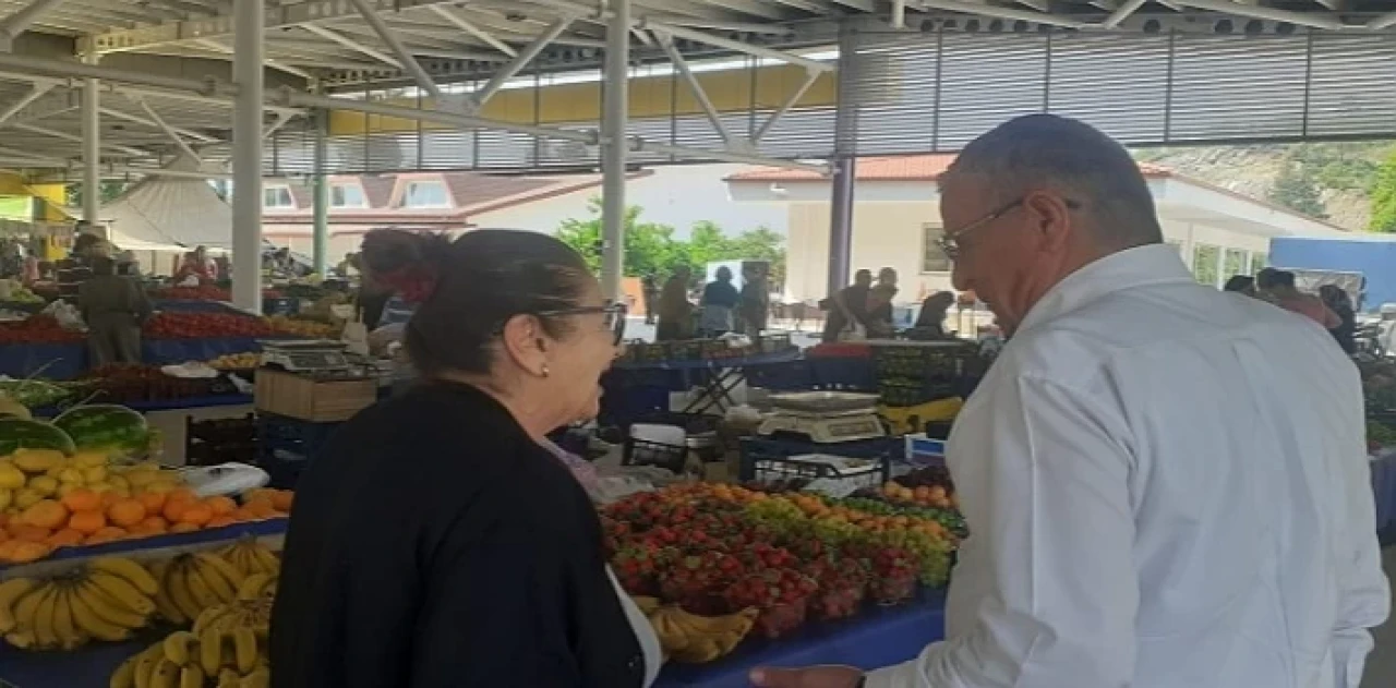 Kemer Belediye Başkanı Necati Topaloğlu, Çamyuva Mahallesi'nde kurulan sebze ve meyve pazarında tezgah açan esnafı ziyaret ederek hayırlı işler dileklerinde bulundu.