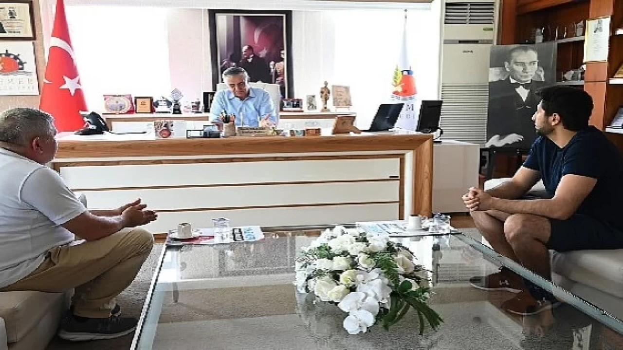 Göynük Belediye Başkanlığı sırasında Başkan Topaloğlu’nun katkıları ile yapılan Göynük Fen Lisesi’nden mezun olup, yine belediyeden aldığı bursla üniversite eğitimini tamamlayan Ankara Üniversitesi Veterinerlik Fakültesi’nden mezun olan Veteriner Hekim Muhammet Eray Başev, Kemer Belediye Başkanı Necati Topaloğlu’na teşekkür ziyaretinde bulundu.