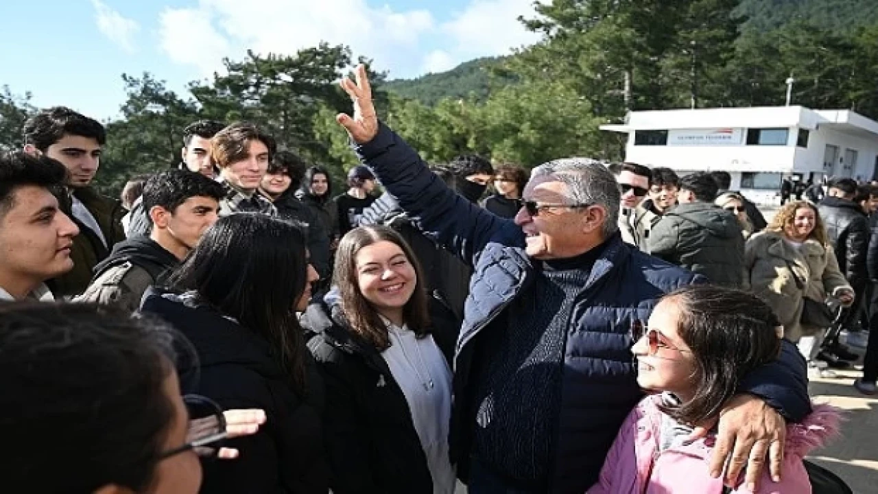 Başkan Topaloğlu, öğrencileri zirvede karşıladı. Zirvede karla karşılaşan öğrenciler soğuk havaya rağmen gönüllerince eğlendi ve Kemer manzarasını izledi.