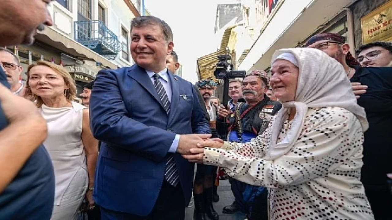 İzmir Büyükşehir Belediye Başkanı Dr. Cemil Tugay, 9 Eylül kutlamaları kapsamında Kemeraltı İkinci Beyler Sokağı’nda 74 yıldır düzenlenen Efe-Zeybek Buluşması’na katıldı. Zeybek gösterisini büyük bir ilgiyle izleyen Başkan Tugay, “Hep birlikte, bu güzel bayramı kutlayalım. Size baktıkça manevi olarak güç alıyorum” dedi.