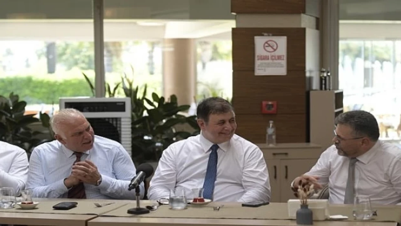 İzmir Büyükşehir Belediye Başkanı Dr. Cemil Tugay, İzmir Atatürk Organize Sanayi Bölgesi  (İAOSB) Yönetim Kurulu Başkanı Cenk Karace, İAOSB Yüksek İstişare Kurulu Başkanı Mustafa Karabağlı ve iş insanlarıyla buluştu. İzmir’in yatırıma ihtiyaç duyduğunu anlatan Başkan Tugay, “Şehrimizin sanayicileri ile gurur duyuyorum. Sizlerin daha güzel işler başarmasına şehrimizin ihtiyacı var. İçinde bulunduğumuz bu ekonomik krizden çıkmanın yolu, üretimi artıracak yatırımların önünü açmaktan geçiyor. Yine ihracatı ve istihdamı artırmak da önemli. Bunların hepsinin yolu sanayicilerden geçiyor. Bu bilinçle şehrimizde daha fazla üretim yapılsın, daha fazla ihracat yapılsın istiyoruz. Biz de bu çalışmalara katkı sunmak istiyoruz” dedi.