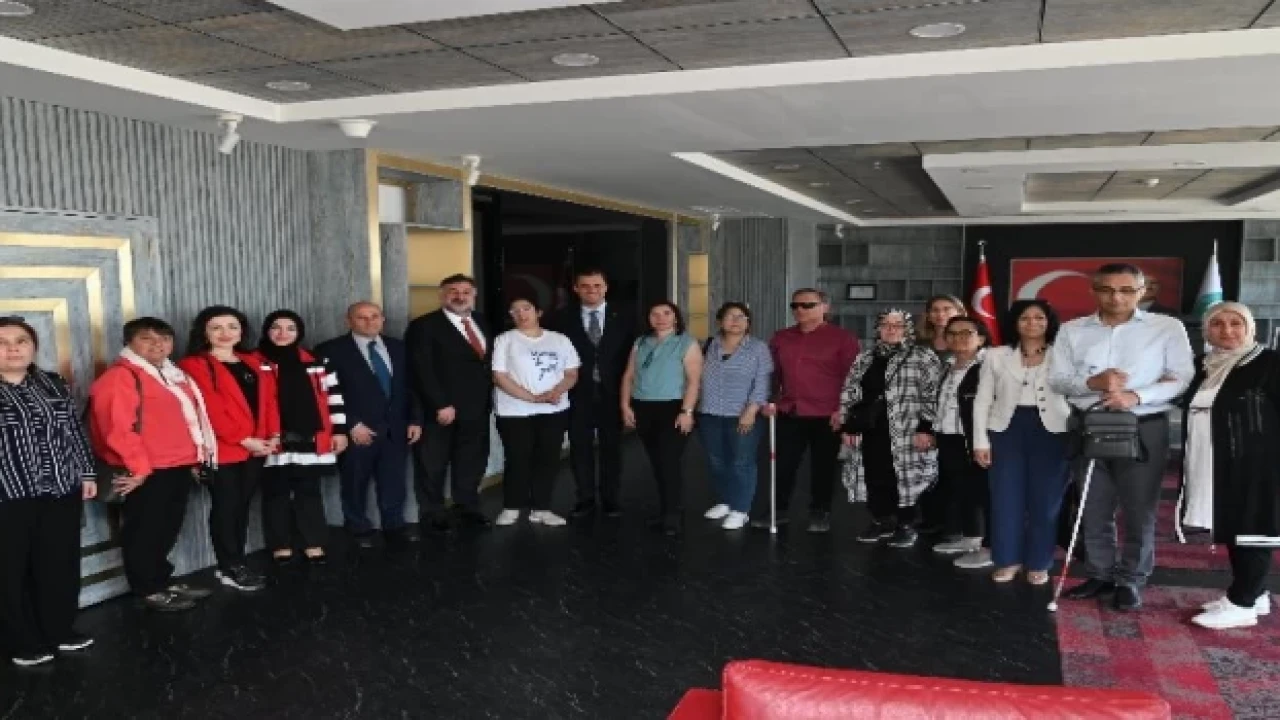 MANİSA (İGFA) - Aile ve Sosyal Hizmetler İl Müdürü Mustafa Kılıç, Manisa’da faaliyet gösteren engelli dernekleri Altı Nokta körler Derneği Manisa Şube Başkanı Hüseyin Pehlivan, Türkiye Beyazay Derneği Manisa Şube Başkanı Füsun Kumbaracı, Manisa Otizm Derneği Başkanı Arife Güngör ve Manisa Sağır Spor Kulübü Derneği ve Manisa Sağır Dilsizleri Koruma Kalkındırma Eğitim Kültür Gençlik Spor Derneği Başkanı Bilal Cansu ile birlikte 10-16 Mayıs Engelliler Haftası kapsamında Manisa Büyükşehir Belediye Başkanı Ferdi Zeyrek’e makamında ziyarette bulundu.