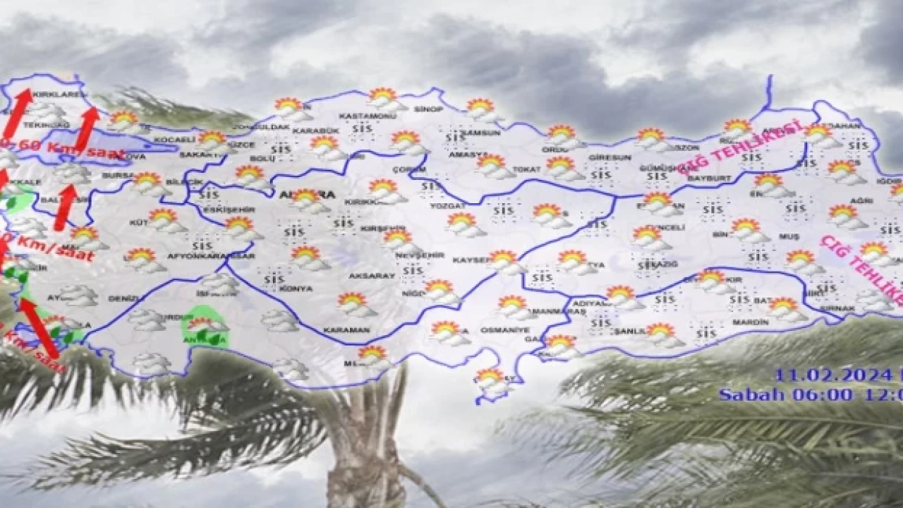 Bu arada günlük tahmini rapora göre Meteoroloji, Marmara'nın batısı ile Kıyı Ege’de güneyli yönlerden kuvvetli (40-70 km/saat) esmesi beklendiğinden yaşanabilecek olumsuzluklara karşı dikkatli ve tedbirli olunmasını isterken, Doğu Karadeniz’in yüksekleri ile Doğu Anadolu’nun doğusunda yüksek kar örtüsüne sahip eğimli bölgelerde çığ riski bulunduğundan dikkatli ve tedbirli olunması konusunda uyarıda bulundu.