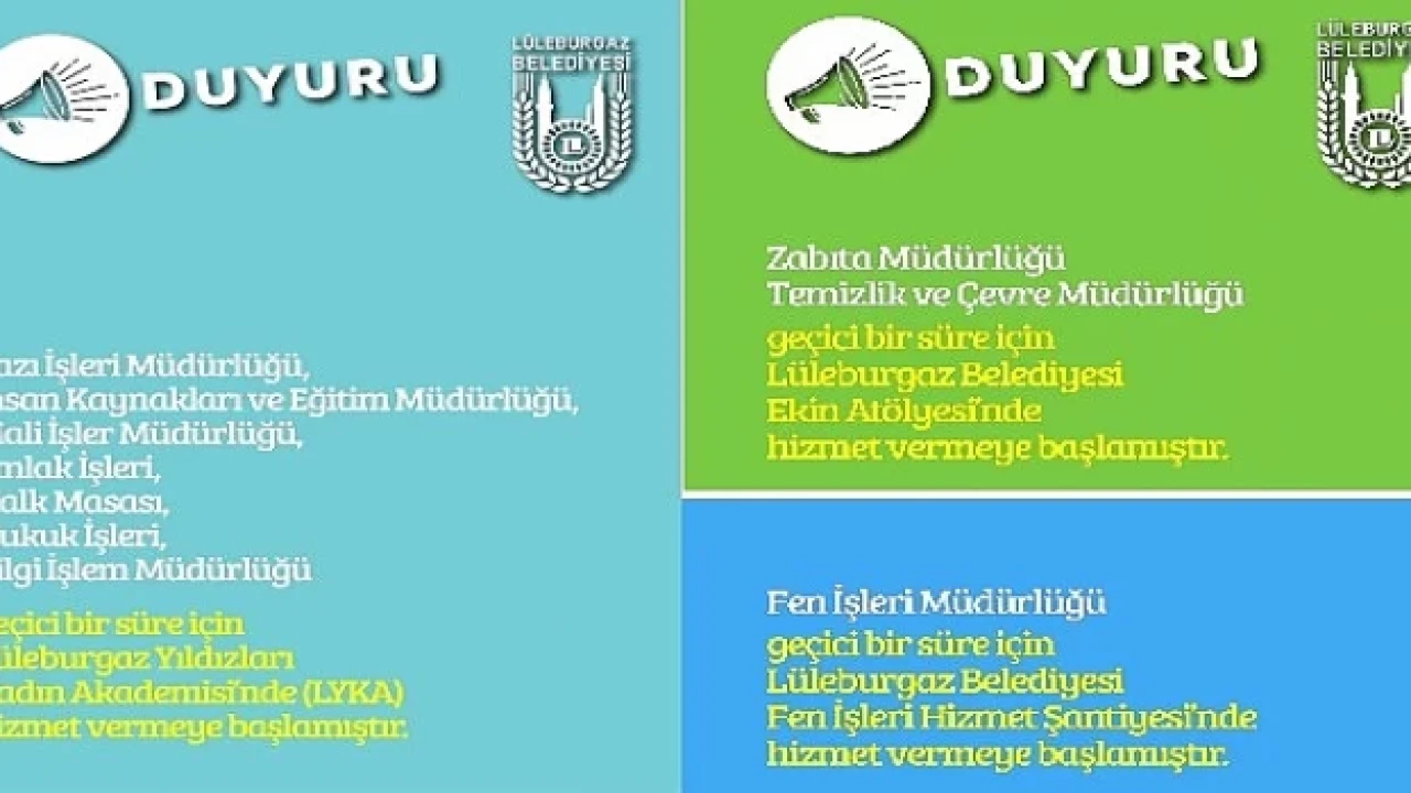 İşte Lüleburgaz Belediyesinin kalem kalem taşınan birimlerinin listesi ve taşındıkları adresler: