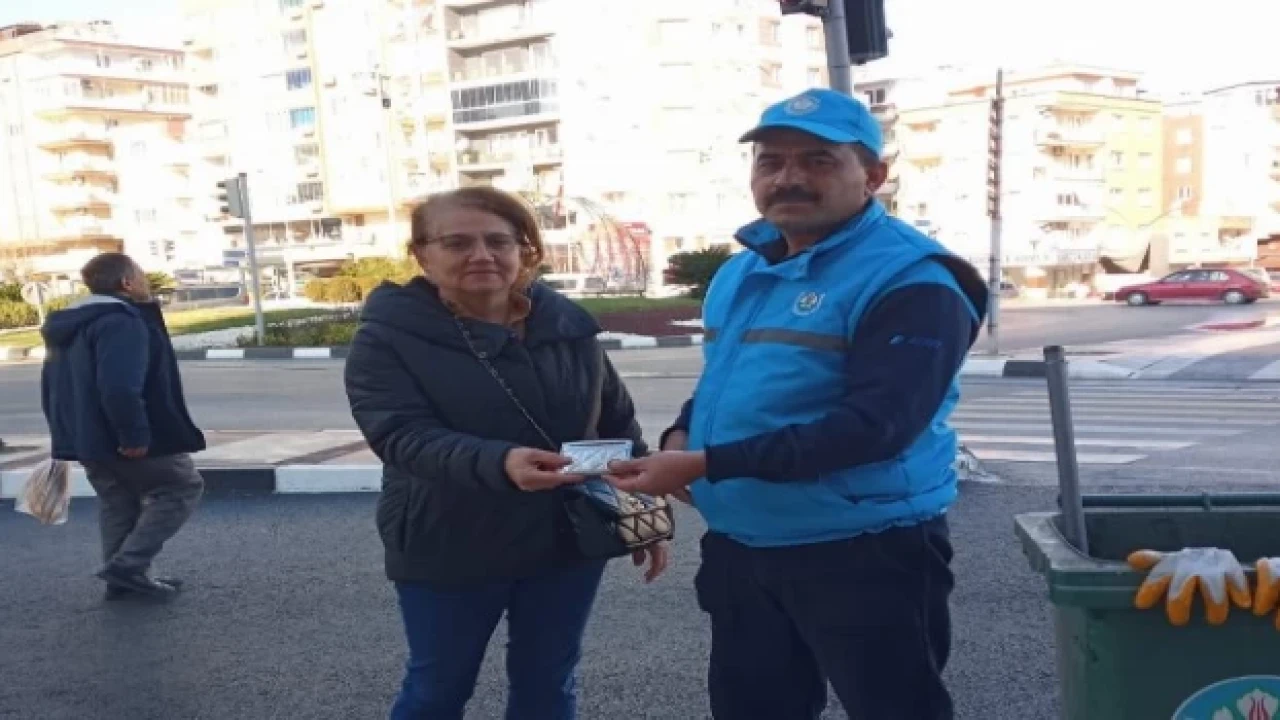 Manisa Büyükşehir Belediyesi Çevre Koruma ve Kontrol Dairesi Başkanlığı’na bağlı çalışan temizlik personelinin dikkati ve duyarlılığı sayesinde bulunan cüzdan sahibine teslim edildi.