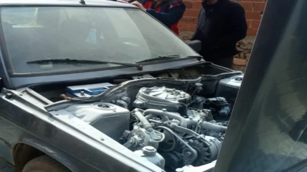 Benzin hortumunun delinmesi sonucu çıktığı tahmin edilen yangında motor kısmı yanan araçta maddi hasar oluştu.