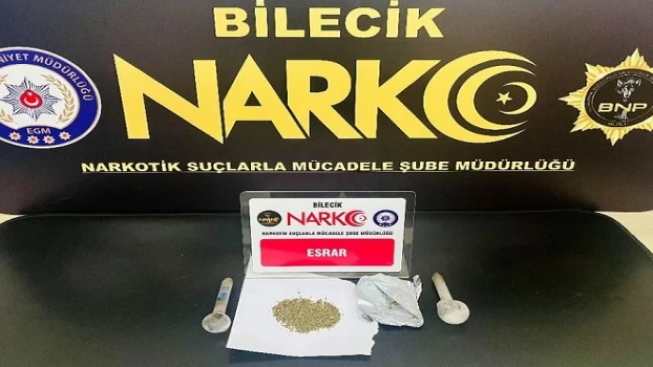 BİLECİK (İGFA) - Bilecik Narkotik Suçlarla Mücadele Şube Müdürlüğü ve Söğüt İlçe Emniyet Müdürlüğü ekipleri uyuşturucu madde kullanan, bulunduran,  nakleden veya ticaretini yapan şahıs ya da organizasyonların deşifresine yönelik olarak Söğüt'te son bir hafta içinde gerçekleştirilen operasyonlar kapsamında; 8.23 gram uyuşturucu madde, 1 adet hassas terazi, 5 adet uyuşturucu madde kullanımında kullanılan aparat ele geçirdi. Yürütülen operasyonlarda toplam 11 kişi hakkında “uyuşturucu madde imal ve ticareti” ve “kullanmak için uyuşturucu madde satın almak, kabul etmek veya bulundurmak” suçları kapsamında yasal işlem yapıldı. Emniyetteki işlemlerin ardından adliyeye sevk edilen bir kişi adli kontrol şartı ile serbest bırakılırken 3 kişi ise çıkarıldığı mahkemede tutuklanarak Bilecik M Tipi Ceza İnfaz Kurumuna sevk edildi.