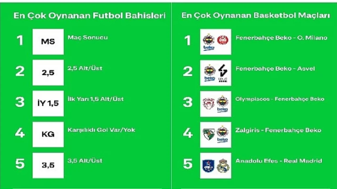 Futbol ve basketbol bahislerinde "Maç Sonucu" tercihi öne çıktı
