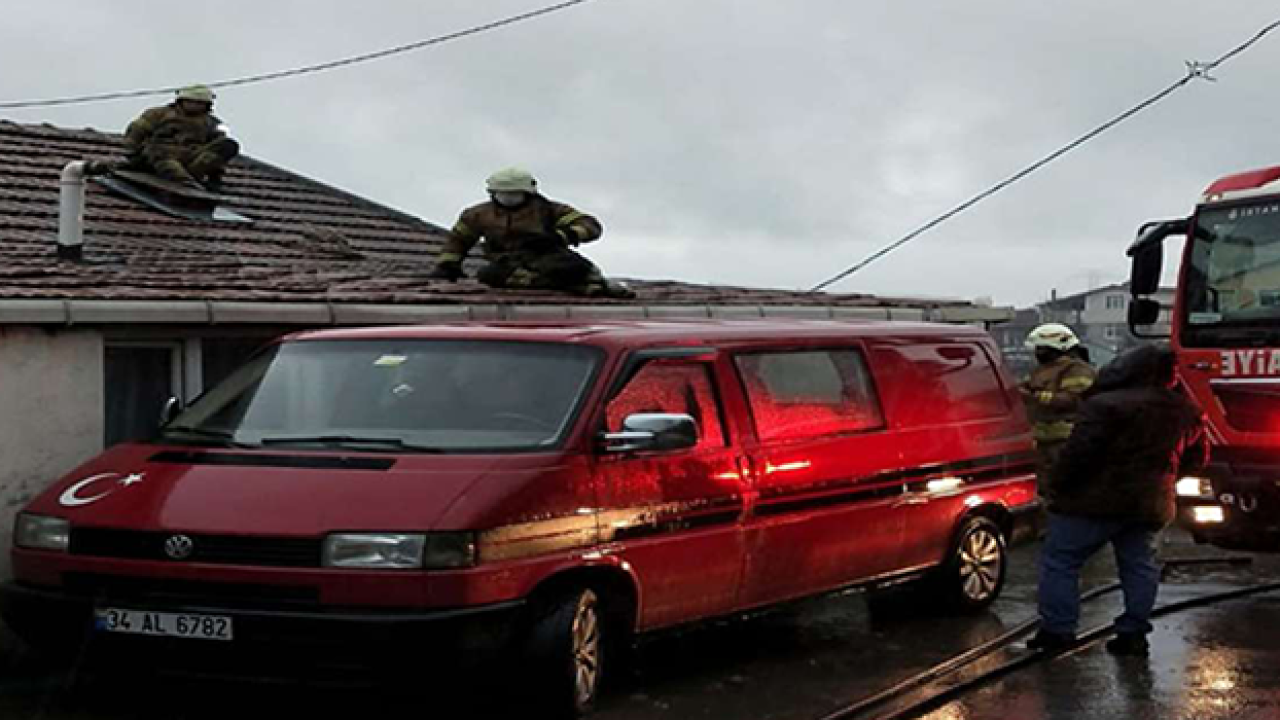 Düşen yıldırım sonrası çatıda yangın çıktı. Mahalle sakinleri içeri girerek yangına müdahale etti.