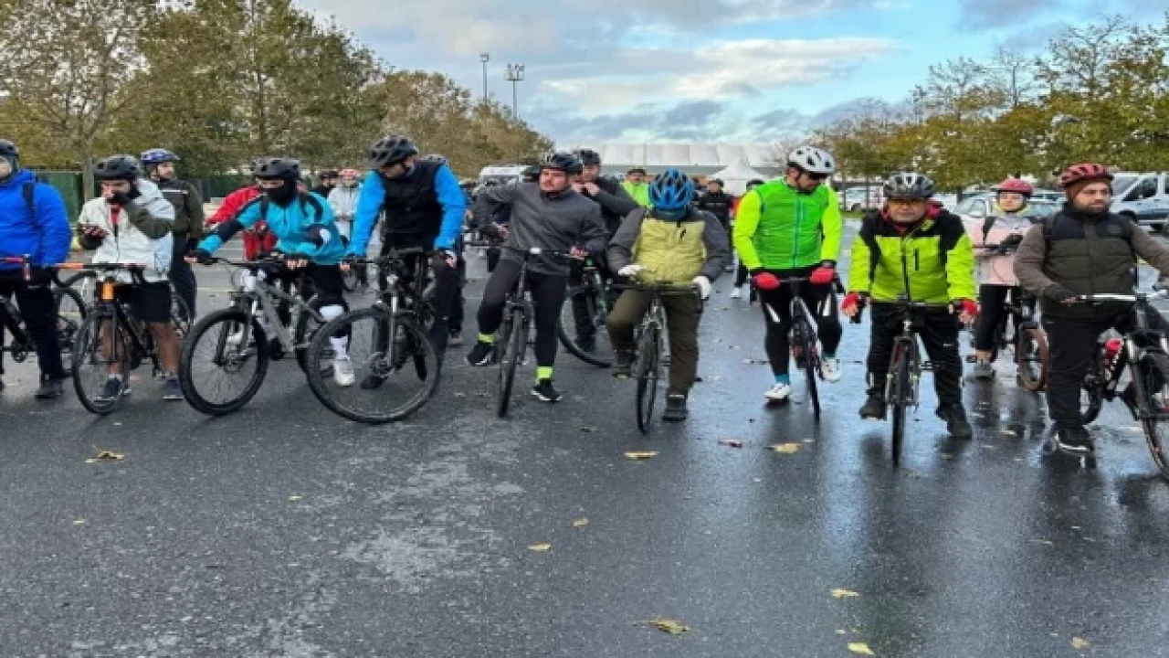 İSTANBUL (İGFA) - Soğuk ve fırtınalı havaya rağmen Yenikapı Bisiklet Evi önünde toplanan bisikletçiler, akan trafik içinde Yenikapı sahilinden Sirkeci istikametine doğru pedal çevirdi.