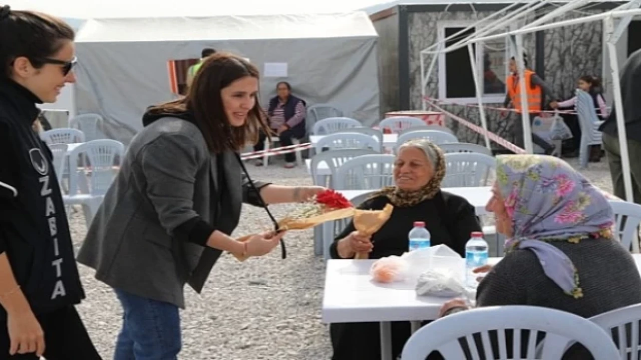 Bodrum Belediyesi tarafından kurulan Hatay Arsuz Dostluk Kenti’nde yaşamını sürdüren kadınlara da 8 Mart Dünya Kadınlar Günü dolayısıyla Bodrum Belediyesi yetkilileri ve CHP Kadın Kolu Başkanı Umut Anıl Özdoğan ile CHP Bodrum Gençlik Kolu üyeleri karanfil dağıttı.