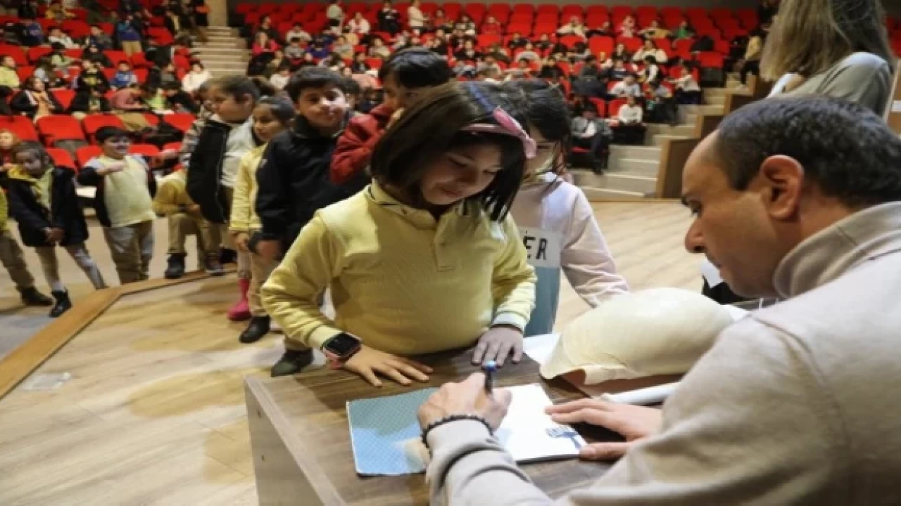 Güler Mustafa Kızılağaç İlkokulu öğrencileri söyleşi sırasında “Bir Kitap Bir İnsan” projesi kapsamında yazdıkları Arılar kitabını yazara hediye etti. Etkinlik öğrencilerin yazara kitaplarını imzalatması ve sınıfça fotoğraf çekimlerinin ardından son buldu.