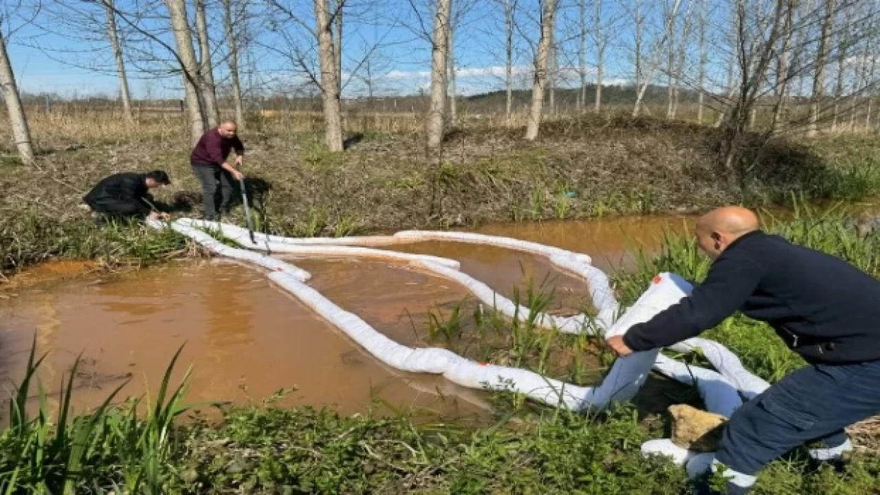 Kartepe'deki NATO Boru Hattı'ndan Sapanca Gölü'ne oluşan akaryakıt sızıntısı Kocaeli Büyükşehir Belediyesi ekiplerince kontrol altına alındı