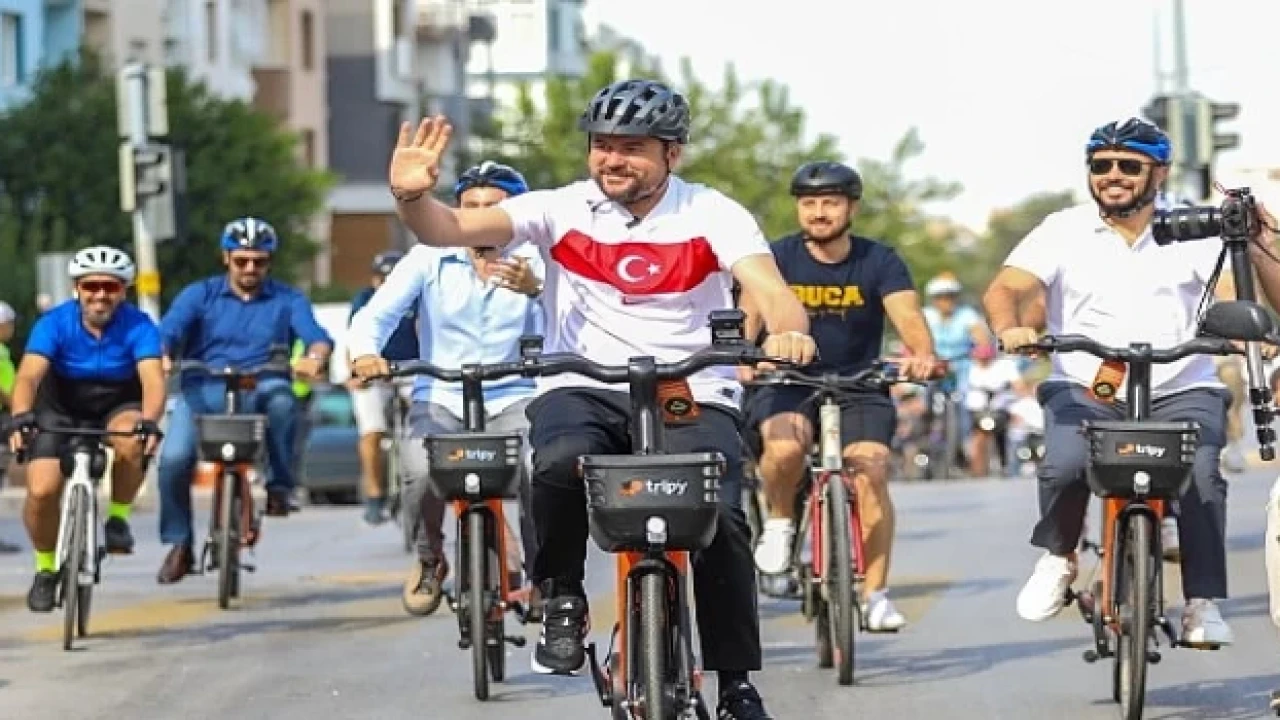 Buca Belediye Başkanı Görkem Duman, çevreci ulaşımı teşvik etmek için pedal çevirdi