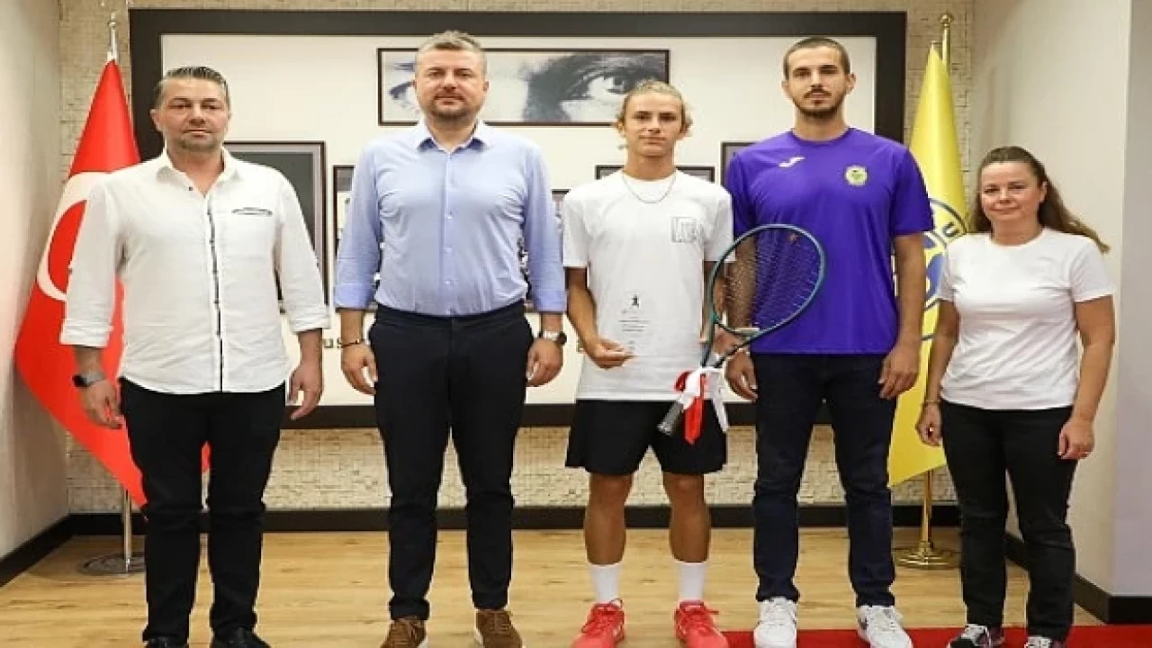 Buca Belediye Başkanı Görkem Duman, şampiyon tenisçi Yağız Gündoğdu’yu makamında ağırladı. Genç sporcuya raket hediye eden Belediye Başkanı Duman, “Bu raketle senden yeni bir şampiyonluk bekliyoruz” dedi.