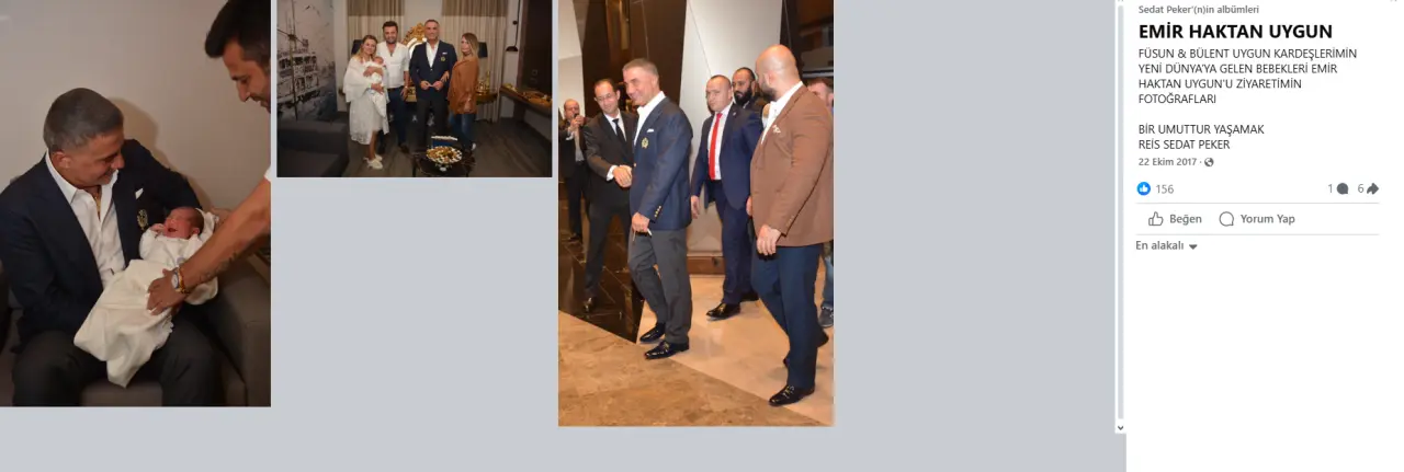 22 Ekim 2017 tarihinde Sedat Peker yeni doğan bebeklerinin ziyareti için Bülent Uygun ve Özlem Füsun Önal'a gitmiştir.