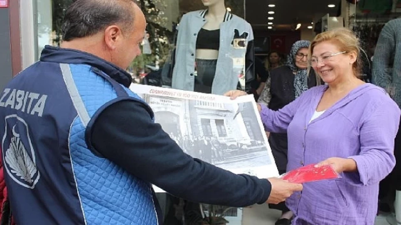 etkinlikler planlayan Burhaniye Belediyesi, esnafa türk bayrağının yanında Atatürk