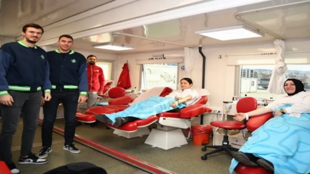 BURSA (İGFA) - Tofaş Spor Salonu seyirci otopark alanında oluşturulan Türk Kızılay kan bankası, Bursa derbisi öncesinde kan bağışı kampanyasına destek veren Bursalı basketbol severlerden ilgi gördü.
