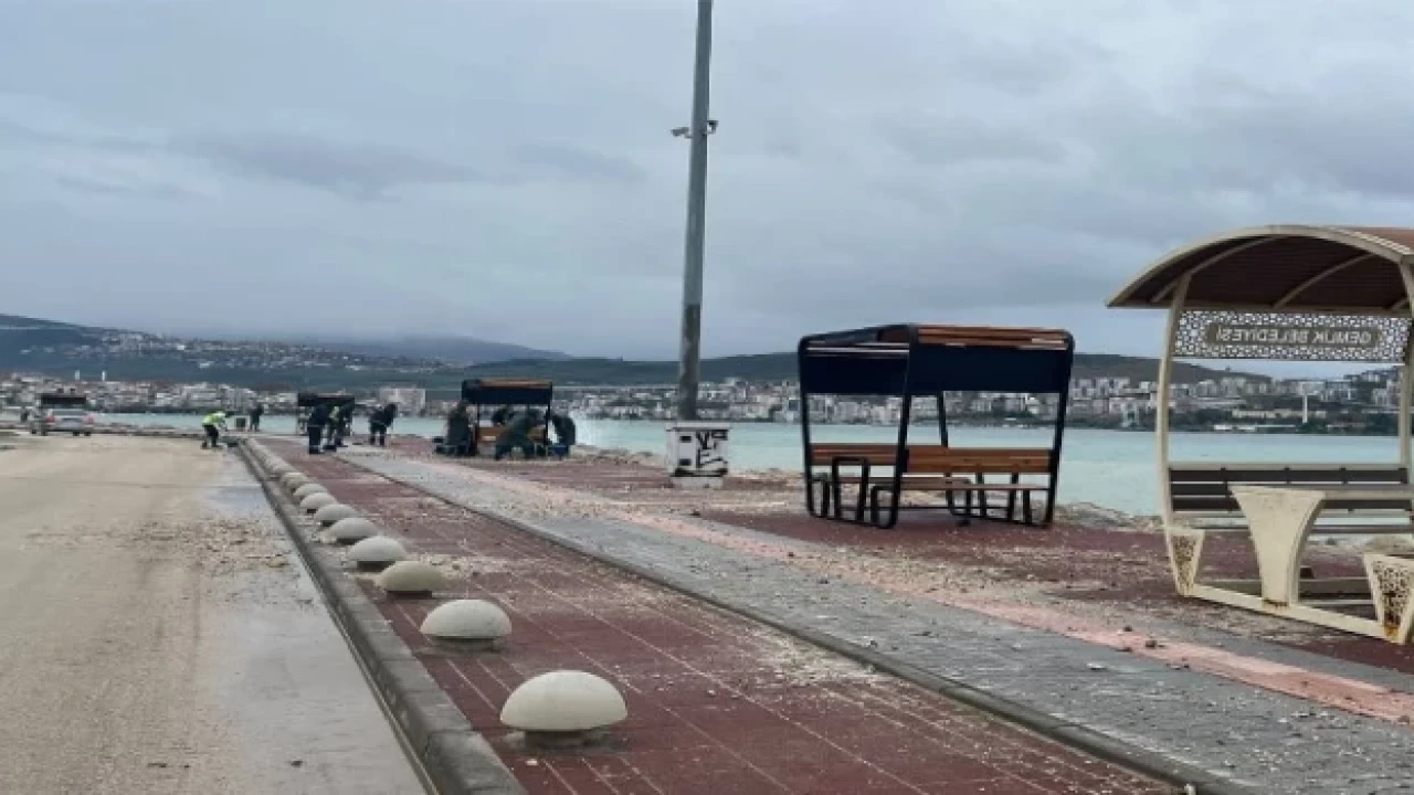 Bursa'da denizin taşmasının ardından BUSKİ ekiplerinin çalışmalarından sonra Gemlik sahil yolu ulaşıma açıldı.