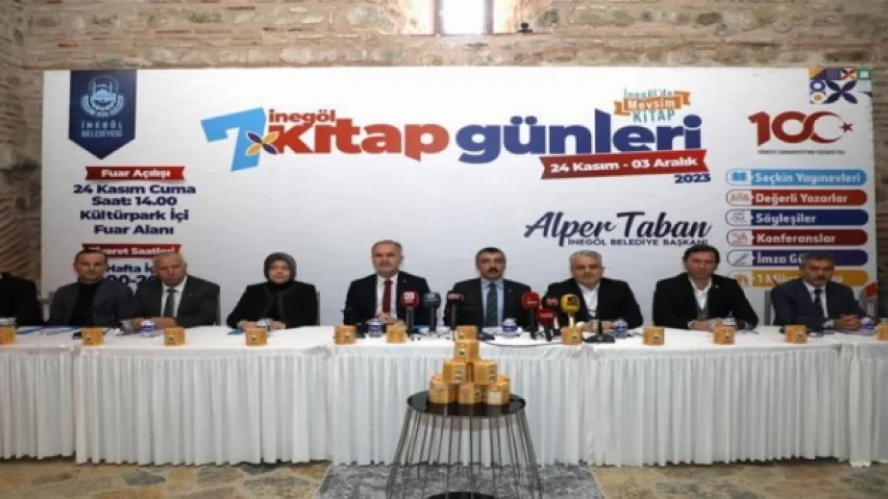 Kitap Günleri Fuarı öncesi bugün; Kaymakam Eren Arslan, AK Parti Bursa Milletvekili Ayhan Salman, Belediye Başkanı Alper Taban, AK Parti İnegöl İlçe Başkanı Mustafa Durmuş, İnegöl Belediye Meclisi Kültür Komisyonu Üyeleri ve Milli Eğitim Müdür Vekili Halil İbrahim Zengin katılımı ile Ortaköy Kervansarayında basın toplantısı düzenlendi.