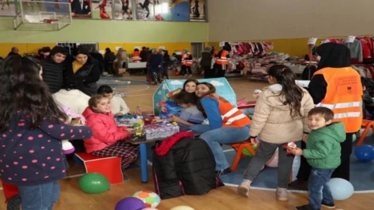 Alanda aynı zamanda çocuklar için de çeşitli etkinlikler hazırlandı. Aileleri ihtiyaçlarını karşılarken depremzede çocukların da felaket psikolojisinden bir an evvel çıkabilmeleri için İnegöl Belediyesi Şehir Tiyatrosu ekibi salonda oyun ve etkinlik alanları oluşturdu. Burada çocuklar da keyifli anlar yaşayarak depremin etkisinden kurtulmaya çalışıyor.