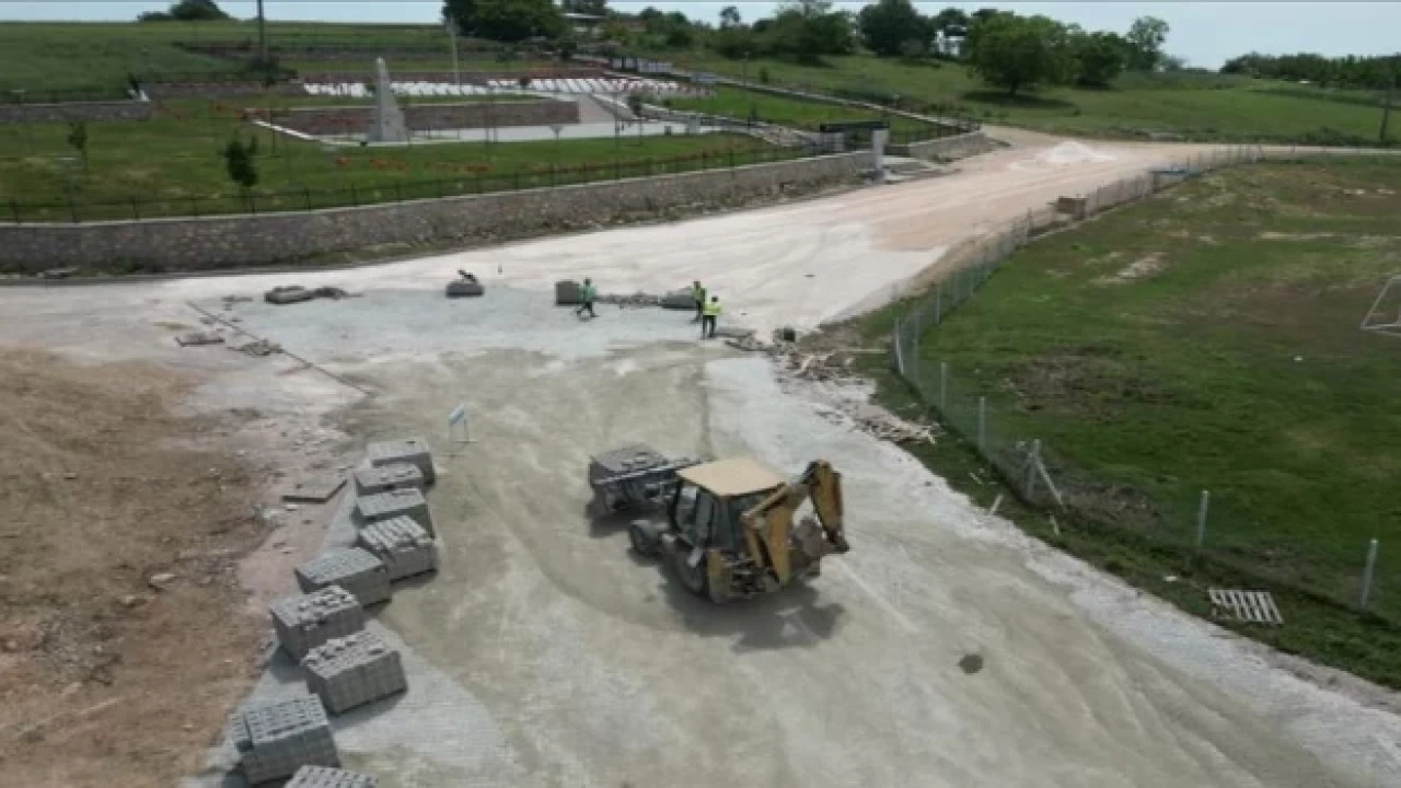 Bursa'da İnegöl Belediyesi, Halhalca kırsal mahallesinde şehitliğe giden yol ile meydanda 6 bin metrekare parke taş kaplama çalışması gerçekleştiriyor.