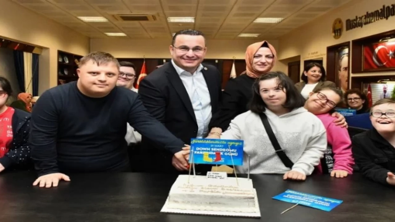 Mustafakemalpaşa’lı özel çocuklar ile tek tek ilgilenen Başkan Kanar, "Bugün 21 Mart Down Sendromlular Farkındalık Günü, çocuklarımızı makamımızda ağırlıyoruz aileleri ile birlikte. Onların fazlaları var eksikleri yok, onlar bizim evladımız. Evlatlarımıza gözümüz gibi bakıyoruz, bakmaya devam edeceğiz. Hem Murat Uzgur Engelsiz Yaşam Merkezimiz ile hem de Down Sendromlular Derneği ile birlikte el ele gönül gönüle çocuklarımızın gelişimini eğitimlerini tamamlamaya devam ediyoruz. Yarın benim doğum günüm evlatlarımda benim doğum günümü kutladılar. Onlara çok teşekkür ediyorum. Sağ olsunlar var olsunlar. Rabbim birliğimizi beraberliğimizi daim etsin diyorum. Herkese teşekkür ediyorum" diye konuştu.