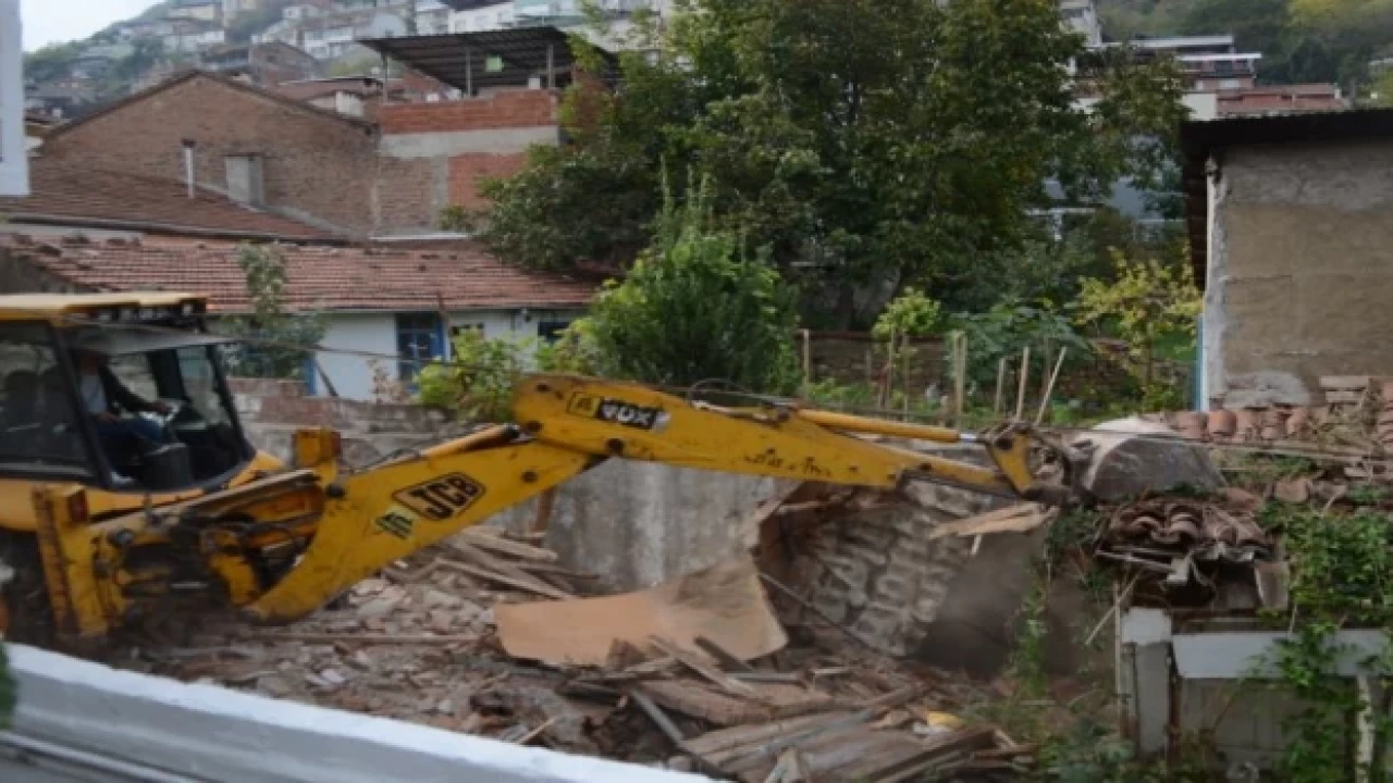 Bursa'da Osmangazi Belediyesi, Muradiye Mahallesi’nde madde bağımlılarının mesken tutması nedeniyle halkın can ve mal güvenliğini tehdit eden metruk binanın yıkımını gerçekleştirdi.