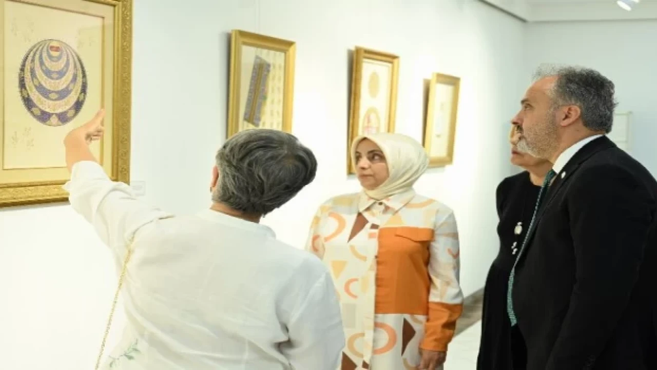 Bursa Büyükşehir Belediye Başkanı Alinur Aktaş da sergi ziyaret ederek Tezhip sanatçısı Memnune Birkan’ı tebrik etti.
