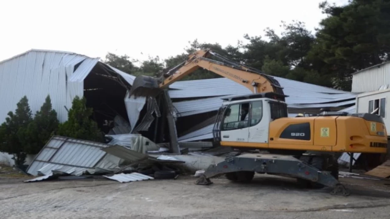 Bursa'da Osmangazi Belediyesi, Ovaakça Santral Mahallesi’nde tarım arazisi üzerine inşa edilen kaçak fabrikaları yıktı.