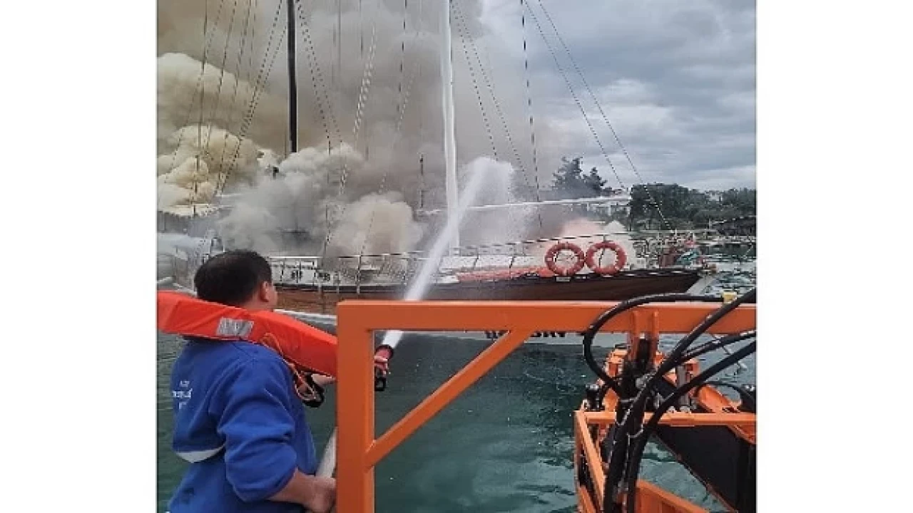 müdahale etti. Ekiplerin yoğun çabası sonrasında lüks guletteki yangın