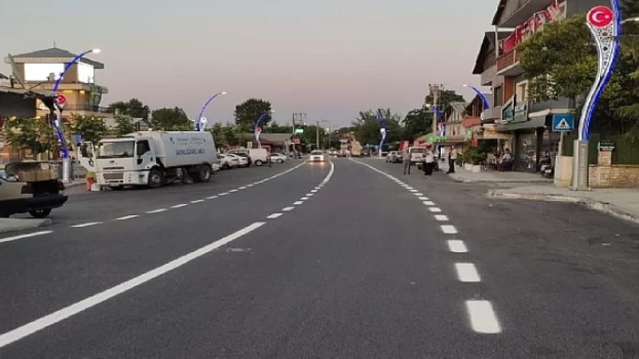 Büyükşehir Belediyesi tarafından Başiskele Kullar Merkez Karamürsel Caddesinde baskı beton yaya kaldırımları, dekoratif aydınlatma direği montaj ve asfaltlama çalışmaları sonrası yol çizgileri de çekildi