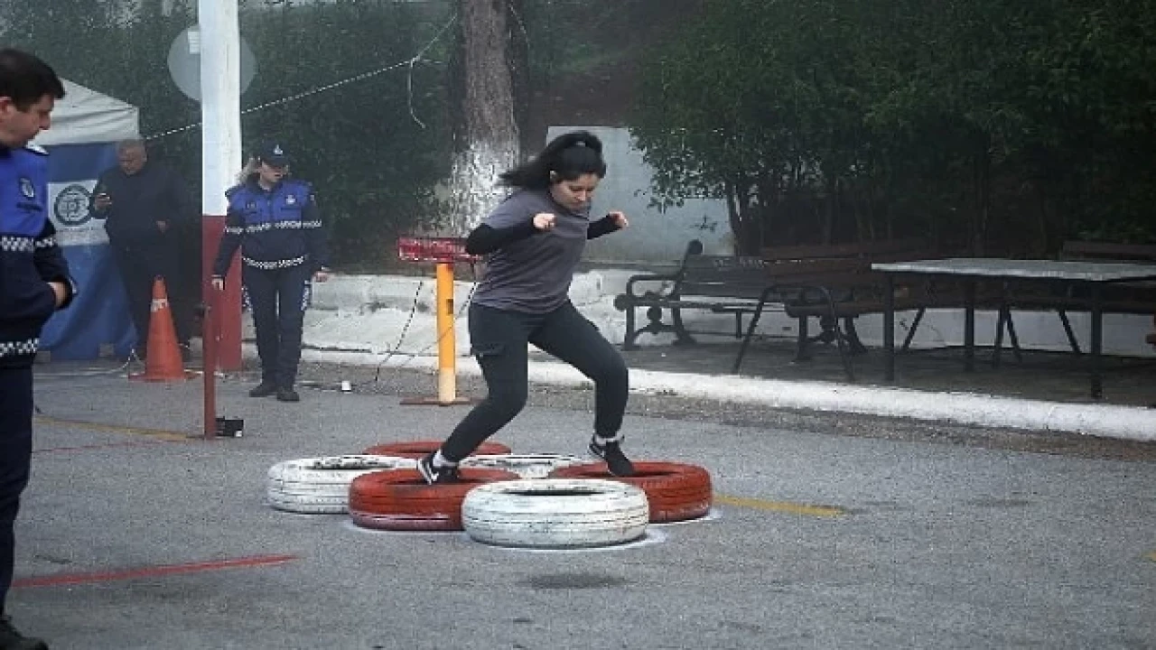 adaylar koşu ve çeşitli engellerin yer aldığı parkurdan oluşan uygulamalı sınavın