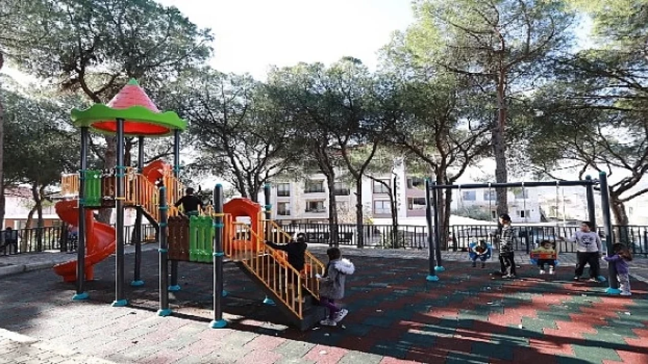 Efes Selçuk Zafer Mahallesi'ndeki Çamlık Parkı, yenilenmiş oyuncak grubu, kütüphane ve