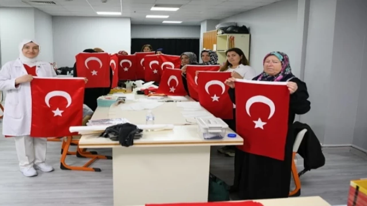 Kocaeli'de Çayırova Belediyesi Dikiş Kursu’nda eğitim alan Çayırovalılar, 29 Ekim Cumhuriyet Bayramı öncesinde anlamlı çalışma gerçekleştiriyor. Prof. Dr. Necmettin Erbakan Kültür Merkezi Dikiş Kursu’ndaki kursiyerler, kendi elleriyle Türk Bayrakları dikiyor.