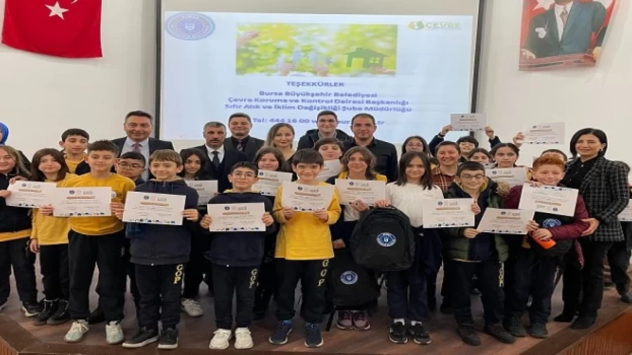 BURSA (İGFA) - Bursa Büyükşehir Belediyesi’nin, güncel çevre sorunlarına hakim, çevreye duyarlı bir nesil yetişmesi amacıyla başlattığı Çevre Okur-Yazarlığı projesi, eğitim kurumlarında hız kesmeden devam ediyor. İl Milli Eğitim Müdürlüğü iş birliğinde yürütülen proje kapsamında, “sıfır atık, geri dönüşüm ve atık azaltımı, su tasarrufu ve kuraklık, çevre konulu kitap okuma, iklim değişikliği ve küresel ısınma, enerji tasarrufu” konu başlıkları belirlenirken, 50 gönüllü okuldan 1.300 5’inci sınıf öğrencisi seçilmiş ve sorumlu öğretmenler atanmıştı. Okullarda eğitim çalışmalarıyla devam eden projenin birinci modülünü oluşturan ‘Sıfır Atık, Geri Dönüşüm ve Atık Azaltımı’ yarışması tamamlandı. “Geleceğime sahip çıkıyorum, Çevre okur yazarı oluyorum!” temasıyla düzenlenen yarışmanın birincisi Orhangazi Gazi Osmanpaşa Ortaokulu oldu. Nilüfer Şehit Murat Alkan İmam Hatip Ortaokulu ikinci olurken, Nilüfer Vahide Aktuğ Ortaokulu da üçüncülüğü elde etti.