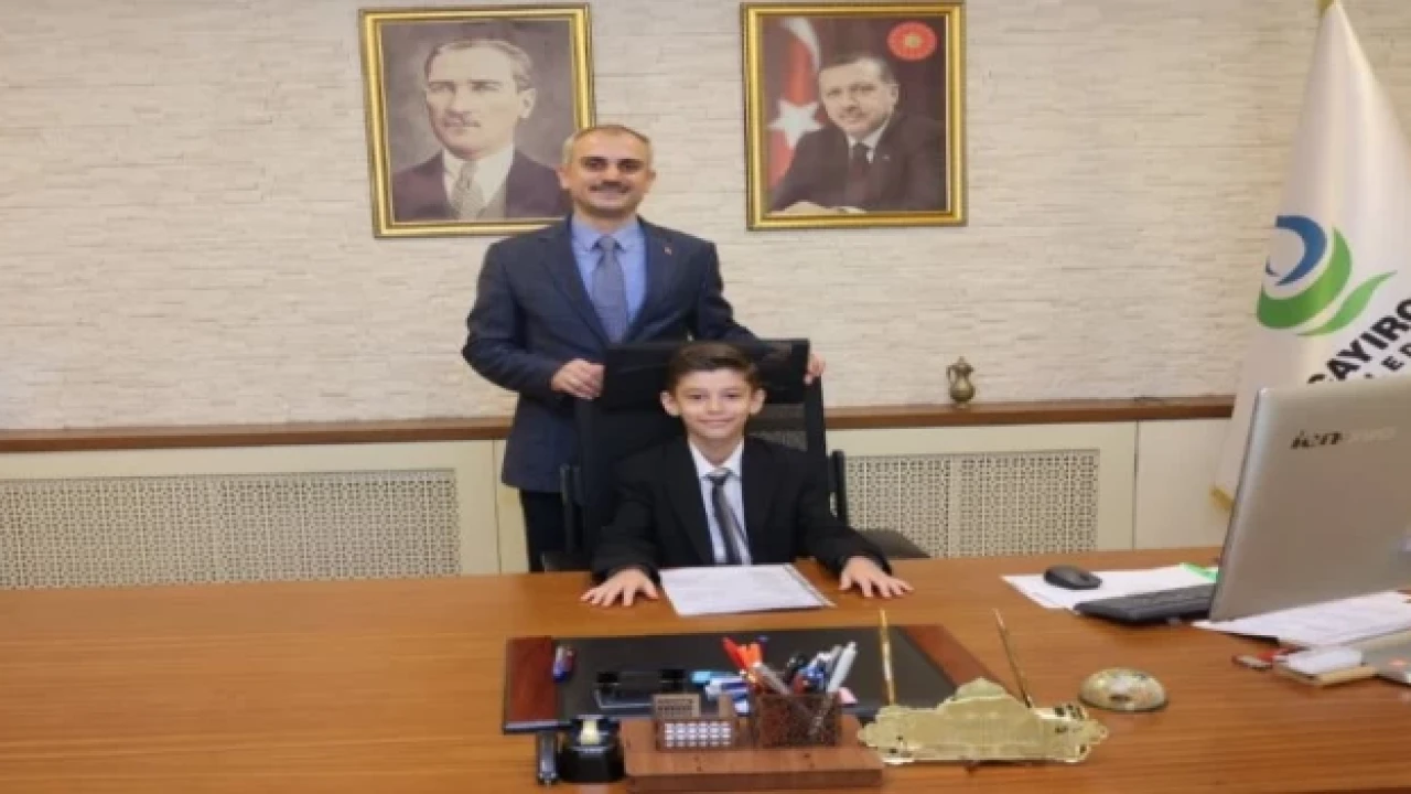 Çayırova Belediye Başkanı Bünyamin Çiftçi, 23 Nisan Ulusal Egemenlik ve Çocuk Bayramı vesilesiyle koltuğunu Ahmet Yesevi İlkokulu 4. Sınıf öğrencisi Deniz Tuna Öztürk’e devretti. Minik Başkan Öztürk, makama geçtikten sonra 3 proje için talimatlarını iletti.
