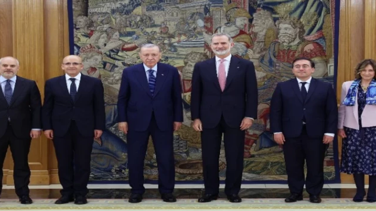 Kral 6. Felipe'nin Zarzuela Kraliyet Sarayı'nda Cumhurbaşkanı Erdoğan onuruna verdiği akşam yemeği ardından sarayda ikili görüşme gerçekleşti.