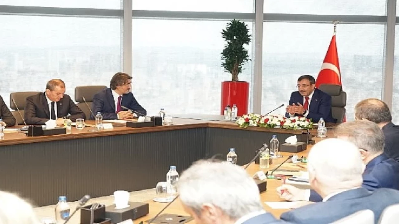 Cumhurbaşkanı Yardımcısı Yılmaz, toplantıda makroekonomik hedefler ve ekonomide yol haritasını içerecek Orta Vadeli Program hazırlıklarının ilgili tüm tarafların görüşlerini alarak hazırlandığını belirtti.