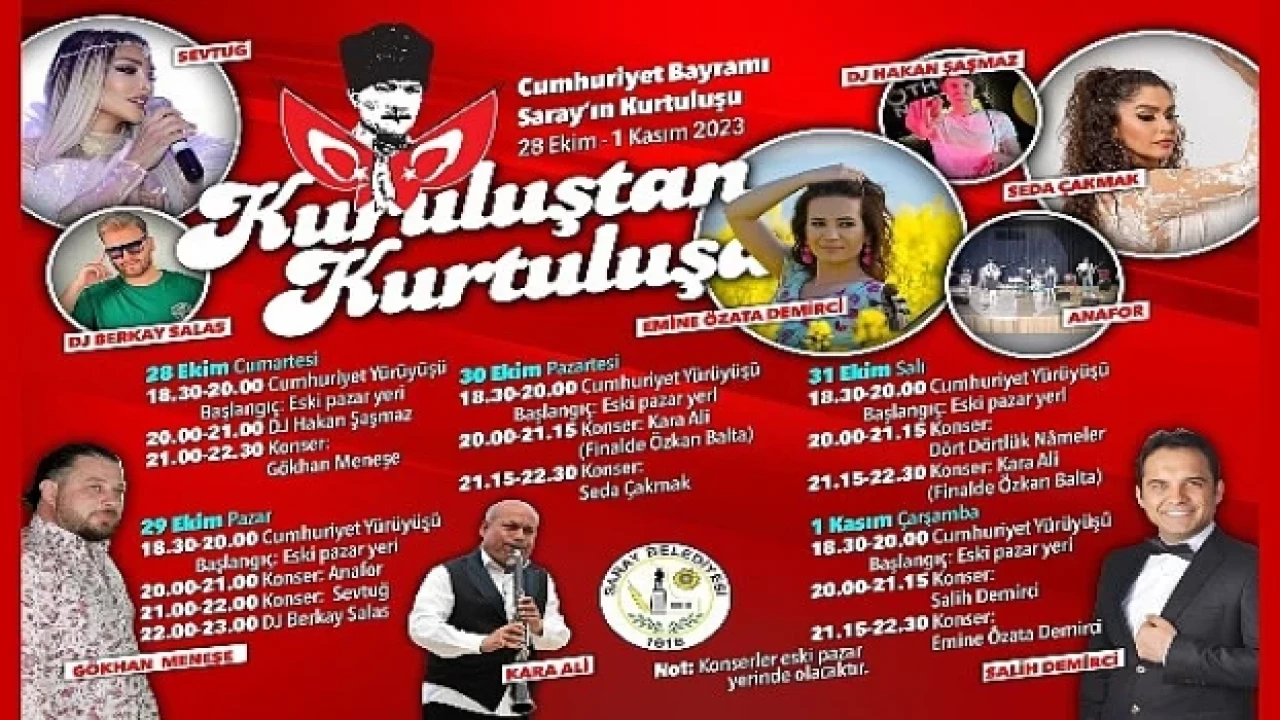 Saray Belediyesi’nin 5 günlük kutlama programı Kuruluştan Kurtuluşa şöyle: