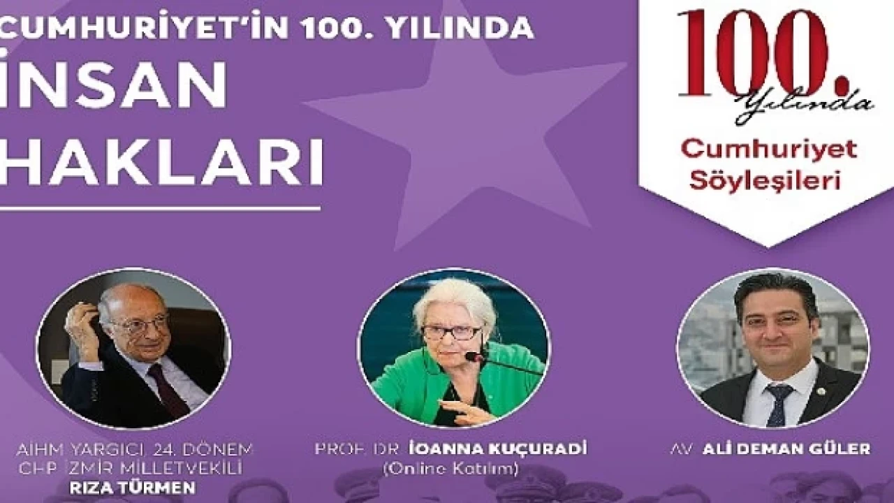 İzmir Büyükşehir Belediyesi Kent Arşivi, Müzeler ve Kütüphaneler Şube Müdürlüğü tarafından düzenlenen “Cumhuriyet Söyleşileri”nin üçüncüsü “Cumhuriyetin 100. Yılında İnsan Hakları” başlığı ile devam ediyor. Ahmet Piriştina Kent Arşivi ve Müzesi'nde 5 Aralık 2023 Salı günü, saat 18.00’da yapılacak söyleşinin konukları Prof. Dr. İoanna Kuçuradi, AİHM Yargıcı ve 24. Dönem CHP İzmir Milletvekili Rıza Türmen ve Av. Ali Deman Güler olacak. Prof. Dr. İoanna Kuçuradi söyleşiye online olarak katılacak. Söyleşide, geçmişten günümüze Cumhuriyet döneminde insan hakları alanındaki değişim ve gelişim süreci farklı yönleriyle ele alınacak.