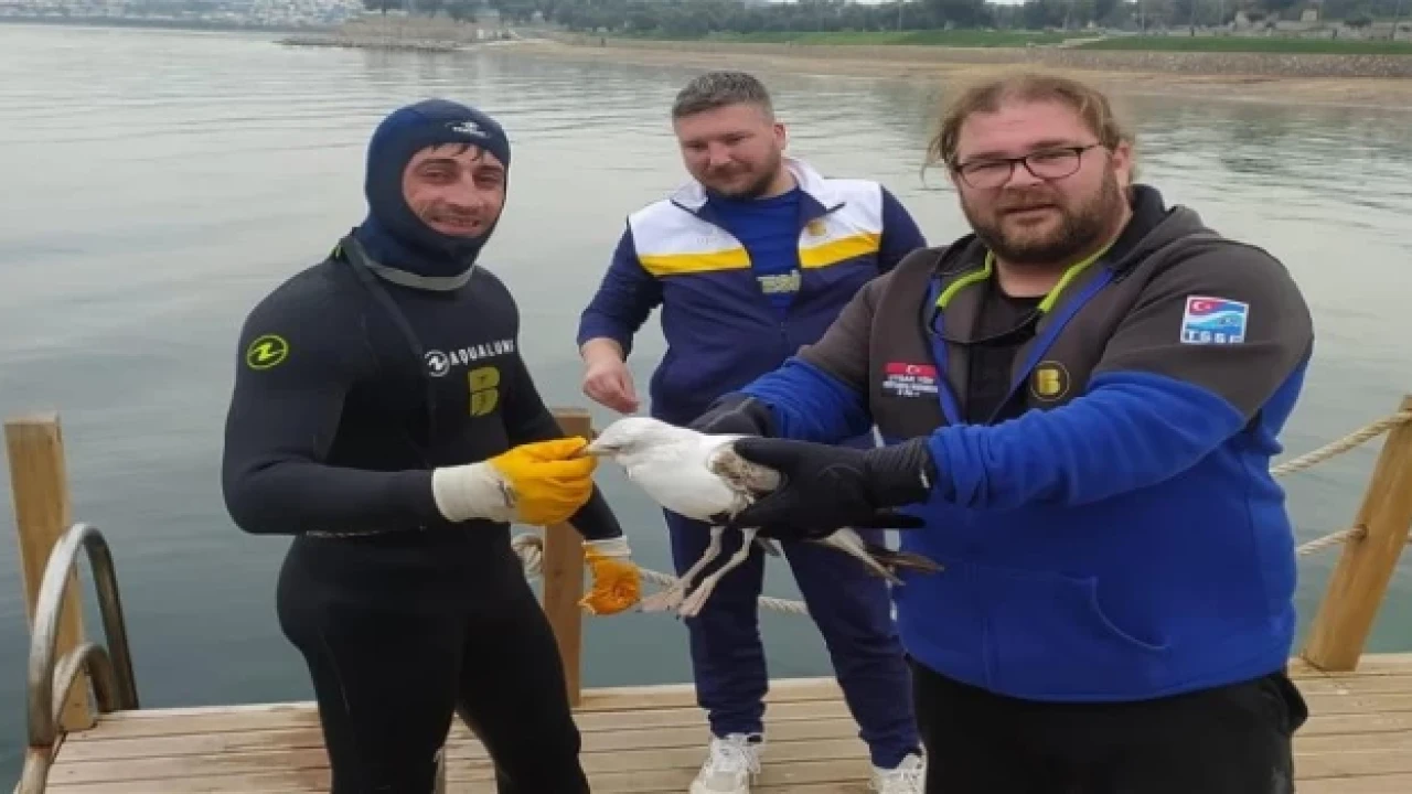 Gömeç’in su altı güzelliklerini dünyaya tanıtmak ve dalış eğitimi vermek için görev yapan Gürcan, balık tutkunlarına seslenerek, “Lütfen, kopan misinalarınızı, sahte maketlerinizi denizde ve deniz kıyısında bırakmayın! Martı ve kediler için ölümcül bir tuzak olabiliyor. Son anda fark etmemiz sayesinde martı kurtuldu ve yeniden doğal ortamına kavuştu” dedi.